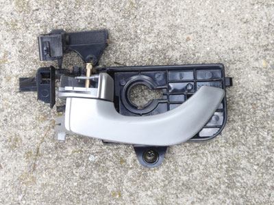 October 14, 2019 - After 13 years, the driver's inside door handle broke apart inside the door. It remained working, if quite loose, giving me time to locate a new factory replacement on eBay. I planned to use the opportunity to replace the long-defunct electric door lock actuator, at least until I got the door apart and discovered the extent of work required. The door handle was easy, just a minute or two once I got the door panel off. Getting to the actuator requires pulling the whole inner panel and disconnecting the window regulator - I opted to continue manually locking the car. $15 for the part and maybe 30 minutes work. |