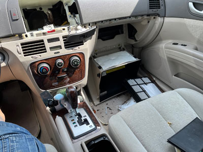 | September 8, 2023 - The poor Sonata has suffered of late. The radio started showing the same bad LCD that prompted replacement back in 2019, so I have been trying to find a good one. Several possible units in local junkyards all ended up having the same LCD panel issue, or were the wrong version. So I bit the bullet and ordered a 'remanufactured' unit off eBay yesterday. It arrived today, and had a totally dead LCD panel. What do they do in a 'remanufacture?' Anyway, that has been sent back and they promise to send one with a good LCD panel. I also have been trying to replace the headlights - the first set had a bad internal circuit and had to be sent back. The second set arrived yesterday and was missing all the bulbs that were supposed to be in it. On top of that, the cup holder and shift knob both got broken by a passenger pulling on them to get into the seat. That took quite a bit of searching, and a little superglue to sort out. I also checked the cabin air filter and found that a critter has been living in it for a while, but not long enough to leave any remnants. I ordered new ones from Amazon and got it replaced today. I also ordered a replacement for the broken right side radio filler. | ![]() |