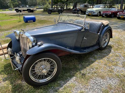 June 1, 2024 - After a month of sitting, Mina was ready to roll out to Mom's, with side trips to visit Dan Ciccone (who just bought a 1949 MG TC), Richard (who was out at WalMart) and Terry and Sue Bond (owners of Eleanor - 1948 MG TC). The car rolled along at 65-70 MPH, keeping up with traffic on the Interstate with no issue. The car is always a blast to drive. |