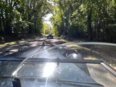 February 22, 2023 - According to the GPS app, Mina's speedometer is pretty accurate, and it looks like the tach works well too! The engine is doing about 3000 RPM at 63-64 MPH, which shows up as 65-67 on the speedometer. Very accurate for 75-year-old mechanical components! I drove over a hundred miles today, and had a wonderful time. I also shared Mina with friends who also own TCs - the consensus was that the TC would be in their garage if it wasn't in mine. I was worried about trying the Brooklands aero screens this morning and rolled to my Mom's with the main windscreen up. However, the day warmed up and I got brave - and was amazed to find that the racing screens do an excellent job! I've left the windscreen folded down. At least part of the drive was on the 'correct' side of the road due to construction that closed the right lane. And friend Richard gave me a really nice EXU TC steering wheel which I will get refurbished. Overall a tremendous day! |