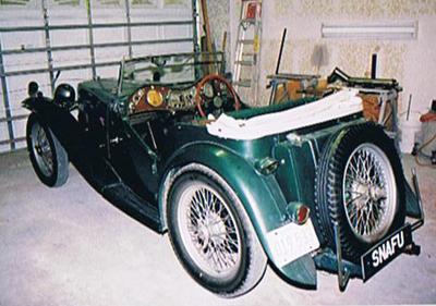 | April 18, 2009 - Most everything has come in for the car except for the headlight retainer springs. I spent some time today cleaning the main garage and getting the Model A back in the corner so the TC could be moved back from the little garage. The main garage gives me a lot more room for working, plus direct access to tools, lights, and supplies. Steve LaPaugh, the friend who kick-started my TC search with his email at the end of January, came out today with his wife to see Wildflower, and of course, get a ride. She started right up and ran great, and has his wife anxious to get their MGB going. The mounting plaque for the AACA national Award badge came in, and I drilled it for a badge bar mount and put it on the car. I also started on my efforts to fix potential deductions for the Senior Award. First up? Removing the modern license plate frame, incorrect hex-head bolts, and the club tag topper. I found a period stainless steel frame in the garage that cleaned up great, and bought a nice slotted-head screw/bolt set to remount it all. Sounds pretty minor, but just those fixes could save 3 points. I plan to take photos and record all of the changes I make just to show the kind of detail you have to watch for in national judging. | ![]() |