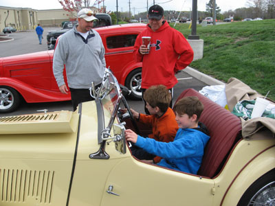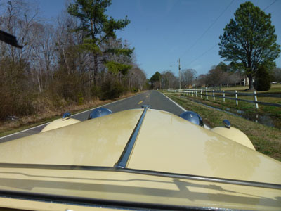 | April 5, 2009 - The First Real Drive - It seems pretty odd to think about, but the past seven weeks have been so frantic getting things fixed up for the Charlotte show that I haven't had the car out for anything further than a couple of spins around the neighborhood! She ran out of gas idling while I was getting the driveway opened up to put her in the garage last night, so I took her around to the corner gas station to fill up. I decided to try her for a short jog on the interstate. Then a good run. With everything still looking good, I kept on to friend Richard Hall's about 30 miles away, with some nice country roads in between. We took her out along some more back country roads, and I rolled back home at 55-60 with no effort at all. She drives wonderfully, very smooth, no shakes or rattles. The total for the first real drive was about 75 miles - and I had a blast. Just wanted you guys (and gals) to know she isn't going to be a trailer queen! |