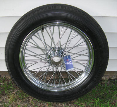 | May 14, 2022 - Tires and Wheels - The big AACA Grand Nationals show is less than a week away, and I have been working to get the car ready in hopes of earning a Senior Grand National award. It has been TWELVE YEARS and over 8,000 miles since she got her Grand National award in New Bern. Surprisingly, she remains in excellent condition, and will mostly require cleaning and touch up. However, I have to undo the updates and modifications made since the 2010 show. Mostly this is simply removal of wind wings, antenna bumpers, and the aftermarket hood ornament. The one serious change was going to new chrome wire wheels. I tend to drive the the way it was designed to be used - enthusiastically - and the original painted wheel were starting to lose spokes. I repaired them and used them for the show, but then stored them away sans tires. Almost exactly ten years ago, buddy Richard gave me a set of nice-looking but very old Dunlop tires when he replaced them on his TC. The wheels and tires finally came together today. I scrubbed the tires down with strong cleaner and a brush yesterday to remove a decade of dust, spider webs, and debris, then sprayed them down with a good rubber treatment. Then I installed all five with new tubes and valve caps today - a much bigger job than expected, but they all look great and I can leave them on for future shows. The plan is to carry them to the show in the van and then swap them out on the field - I am not going to drive on the Interstate with tires that are likely to be more than 40 years old! With the big job done, it is time to start cleaning. | |