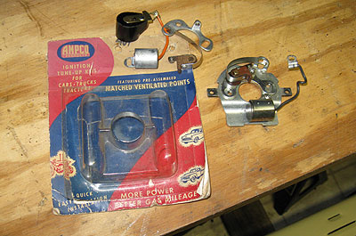 | March 26, 2009 - I took advantage of warmer temperatures to get the air cleaner can and brackets painted, and also repainted the steering column and starter where leaking fuel had curdled the paint. Looks much better now. |