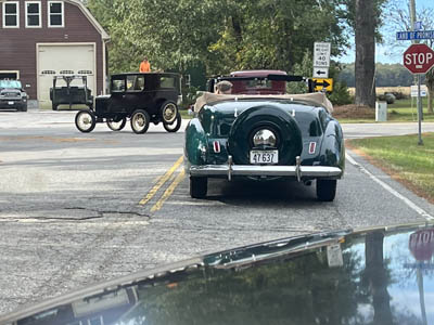 | October 18, 2025 - Almost a full year since my last post, thought he Nash has been out during that time. I used it for our Square Car Tour today, taking position behind a 1939 Lincoln Zephyr convertible, the first Continental. There were four older cars with us on the run: a 1925 Model T Ford, a 1927 Model T Ford, a 1930 Model A Ford, and the Lincoln. The Nash did great, and I had Jennifer Beach (Chip's sister) as a passenger. The car did great, and we had a good time. |