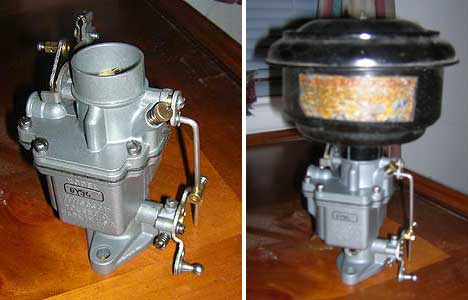 January 2, 2008 - House projects and other things have kept me from accomplishing anything on the cars. However, I have been gathering parts when i could. At left is the rebuilt carburetor I just got from Chuck Koehler - it's so pretty I hate to run gasoline through it! This is the correct carb for my car - he took an incorrect one in trade. The carb is preset and came with a new manifold gasket and instructions for fine tuning. I was very pleased with the rebuild work. Every part looks new, and he even machined the base to ensure a tight fit against the flange. Better yet, the Crosley Air Filter that friend Bob Parrish gave me fits perfect. I may actually have time this weekend to get the poor little car going. I have to pull the water pump and try reaming out the shaft bushing enough for the shaft to turn freely. |