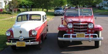 May 4, 2007 - A few more drives with the Crosley - the smoking seems to be clearing up as the engine gets worked in. I still have cooling system issues, but I plan to get the water pump taken care of soon. With the Jeepster finally out of the way, I can get the poor Crosley back inside where she belongs. I took the opportunity to pose the Crosley with the Jeepster today (a side shot is on the Jeepster's page). I have to admit that the little wagon is starting to grow on me - I originally said it was plug ugly, but now it is starting to have a slight 'cute' factor. |
