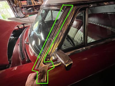 March 30, 2026 - An eagerly awaited piece of chrome trim arrived today and was promptly tossed. What was advertised as a vent window for a 1953/54 coupe turned out to be for a 1963/64 Falcon convertible. And it was broken, missing most of the bottom channel. The seller refunded my money as soon as I put in a ticket on eBay. In fairness, the main part number was the same (7322223), but the prefix was different (C3DB). And I didn't realize it was broken off until I compared pictures of a complete vent window. So it is really pretty and totally useless. Oh, well. |