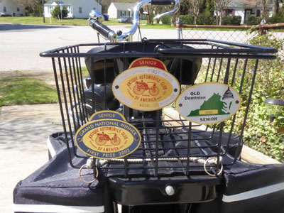 | April 5, 2024 - The Solex received its second Repeat Grand National award today at the 2024 Grand Nationals held in Charlotte NC. A sorta funny thing happened after judging. The people next to me have a Solex that they can't start, and I pulled the top cover off to show her where to prime the carb. The bolt and washer fell off, but only the washer hit the ground. We searched the bike and the area for at least 30 feet in every direction. So I replaced the bolt with a new one from Ace Hardware - easy and cheap, and looks the same as the one before except shinier. Which is OK for a restored bike. |