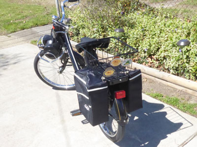 | March 25, 2022 - Ah, the dangers of estate sales. TRAACA member Jeff Howie passed away a few months ago, and a friend called me this morning to let me know there was an estate sale at his home just a few miles from me. I went over to find out about his Checker Marathon that my neighbor has been interested in and discovered Jeff's 1966 Solex moped sitting in a corner of the living room. Not only fully restored, but awarded Junior, Senior, Grand National, and Senior Grand National badges. The moped is still perfect, without a scratch or blemish, and is light and small and easy to deal with. And mine. I was in SUCH need of another vehicle! Lots to learn, but it is pretty much ready to go. I just need to figure out the controls! | |