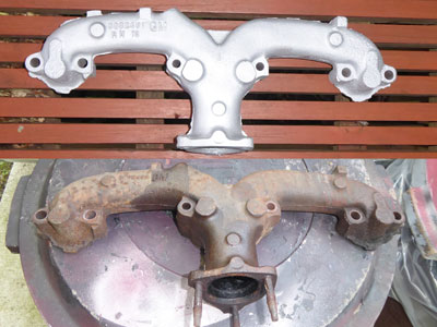 August 1, 2022 - A little cleanup work on the manifolds tonight. I bead blasted the left side manifold and painted it with high-temp manifold aluminum. The left side had a heat riser still on it, though missing the flap, thus the longer studs. I will probably replace all the studs to be safe. Also, a friend pointed out that I can at least start the car with no exhaust - it will be loud, but I can get it running before I invest in an exhaust system. |