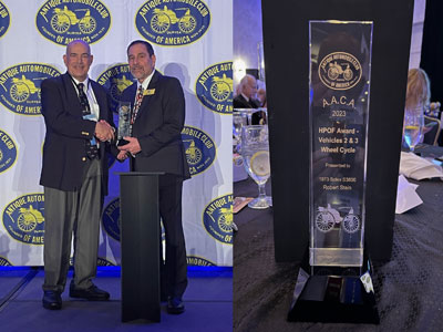 October 27, 2023 - I got a nice surprise in the mail today. The Solex has been nominated for an AACA National Award! The Centaur scooter won an HPOF National Award back in 2007 - it would be nice to get another one! I took photos and sent them and a data sheet out to the committee. I'll know sometime in December. |